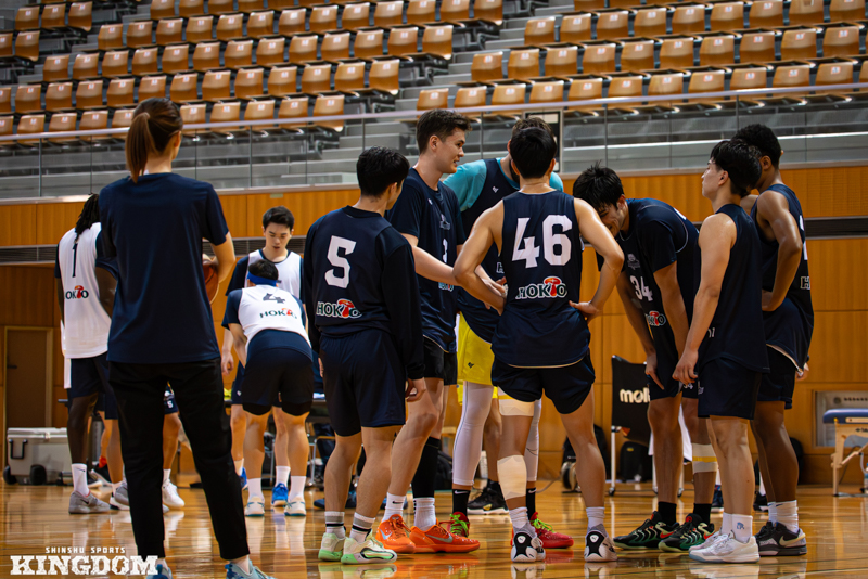 今季の信州の強みはハドルの中心が固定されていないこと。ベテランでも若手でも関係なく、どの選手も意見を交わせることで、チーム力の厚みが見受けられる。