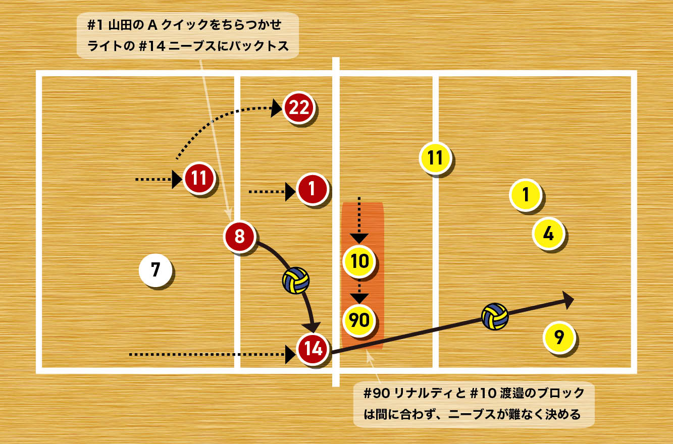 æãããå Žé¢ã¯ãããã§ããããã象城çã ã£ãã®ã¯GAME1ã®ç¬¬4ã»ããã21-20ã®å Žé¢ãã©ãªãŒã«ãªã£ãŠããæ¥éå ºBZã®ãªããžããïŒOPïŒãŠã«ãªãã¯ã»ããŒã«ã®ã¹ãã€ã¯ããããã¯ã¿ãããããããã®åãè¿ãã§ãµã€ãã¢ãŠããåã£ãã