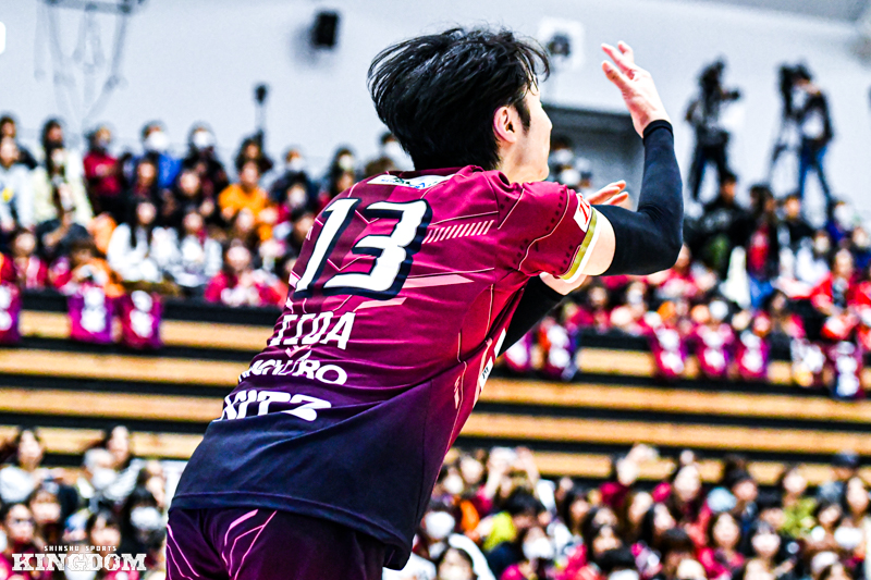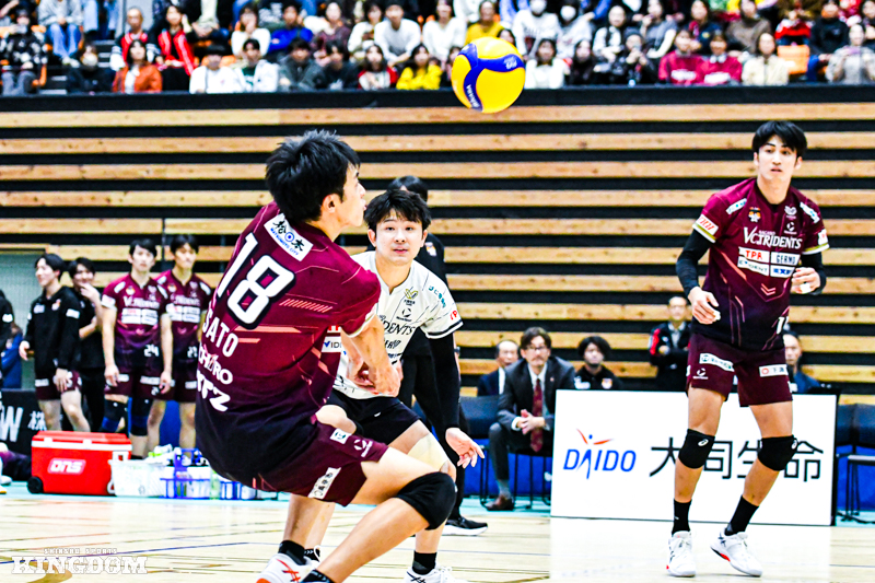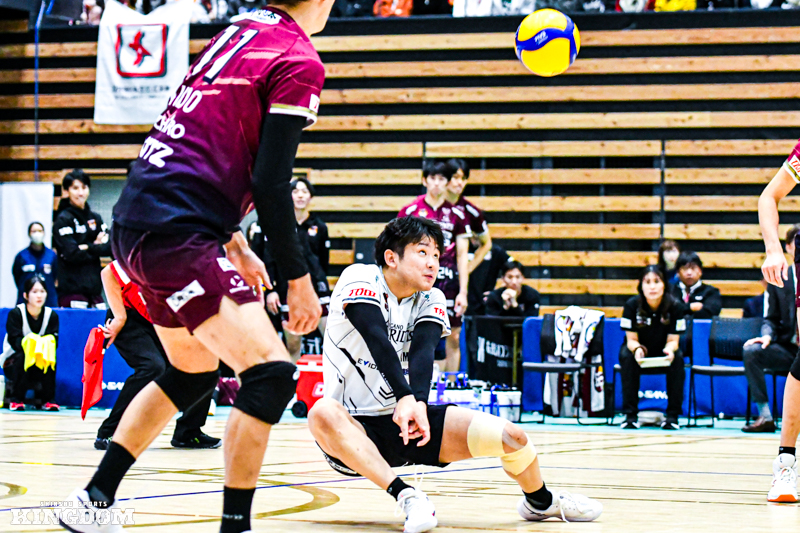 第1セット途中でOH佐藤隆哉に代わり後衛から出場したのはOH一条太嘉丸。丁寧にサイドアウトを重ねると、第2セットは最初から出場。WD名古屋の強いサーブに対して粘り強くパスを返した。