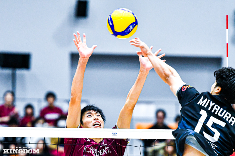 第2セット途中からはMB安部翔大に代わってMB岸川蓮樹が出場。左利きのMBである特異性を生かして相手のブロックを惑わせるスパイクを決めた。