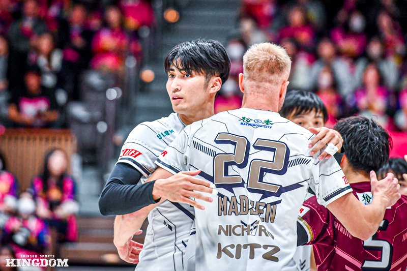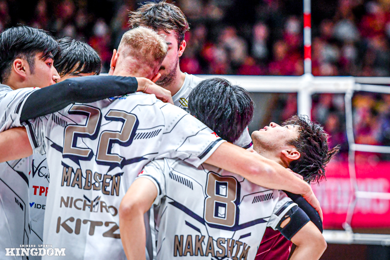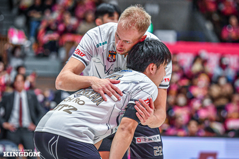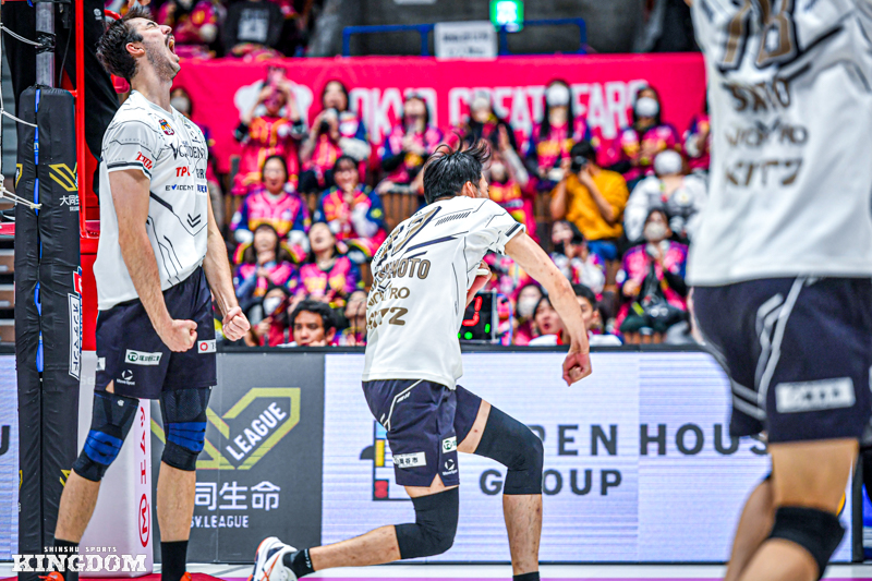 26-26からオポジット(OP)飯田が、31-31からはOHオスカー・マドセンがそれぞれブロックに成功。逆にセットポイントを握るシーンもあった。