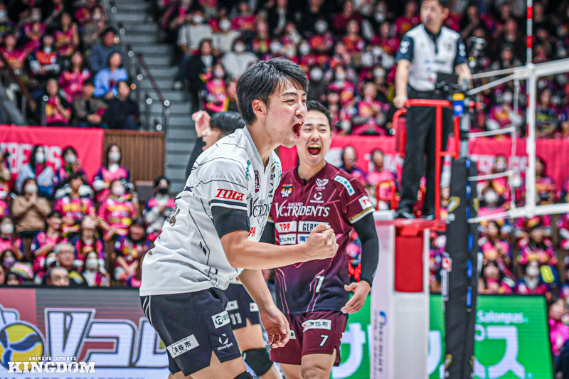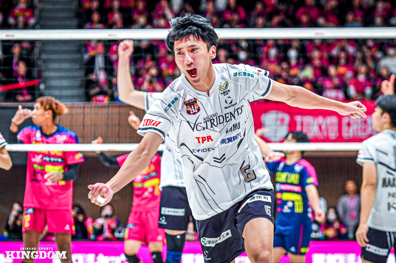 それでも第4セットでは終盤、21-20の局面からリリーフサーバーで登場した赤星伸城のサーブからブレイク。22-20とし、その後はサイドアウトを重ねて24-22とマッチポイントを握る。