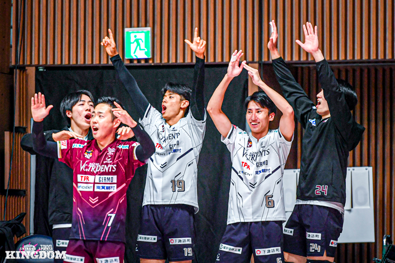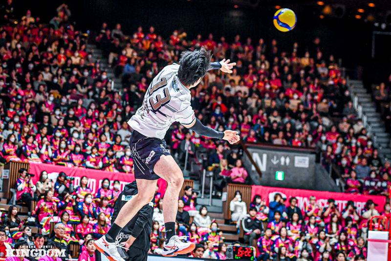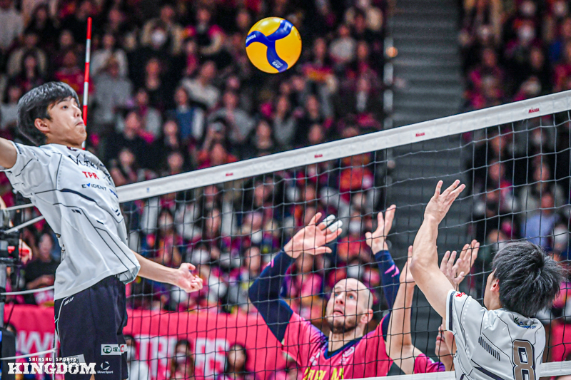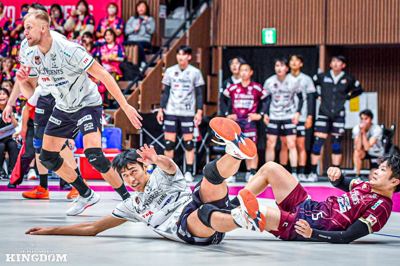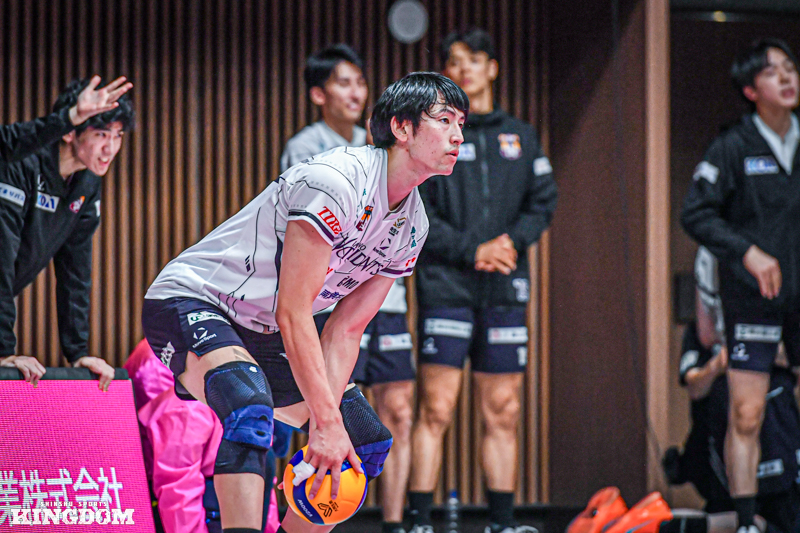 しかしセッター(S)中島健斗のサーブやリリーフサーバーで登場した飯田孝雅のサーブでブレイクを取り、24-24と終盤で追いついてデュースに持ち込んだ。