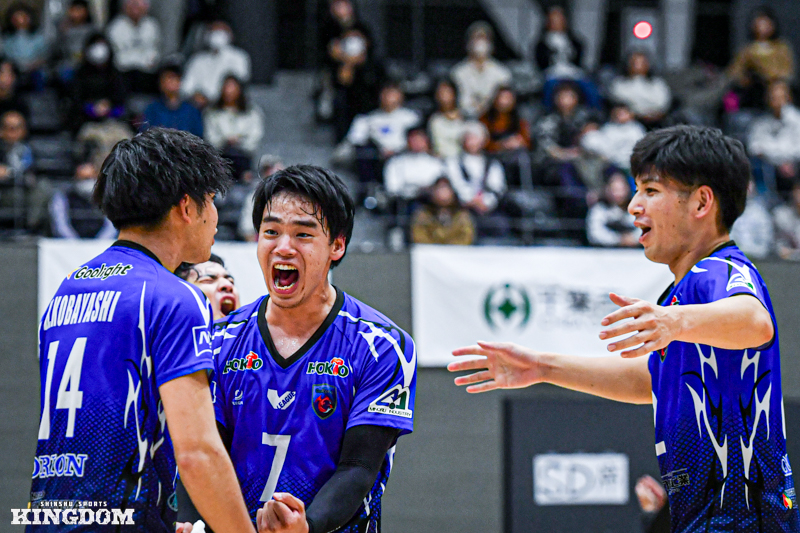 しかし、序盤のリードを効果的に使った千葉ドットに19-25とセットを取り返される。第3セットはキャプテンのミドルブロッカー(MB)小林雅治がブロックにアタックに躍動した。