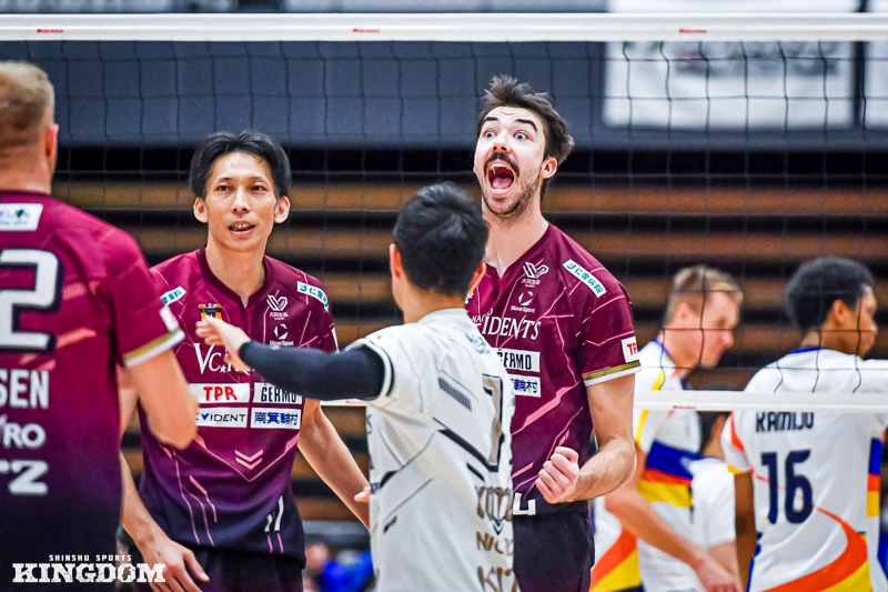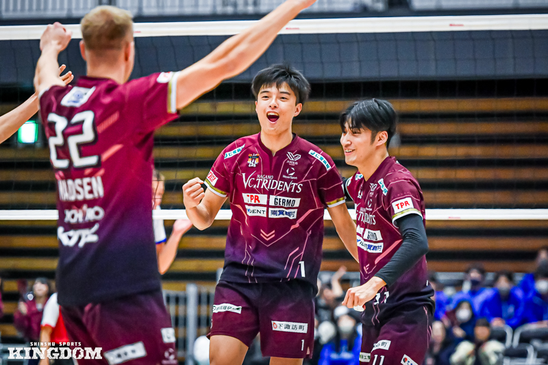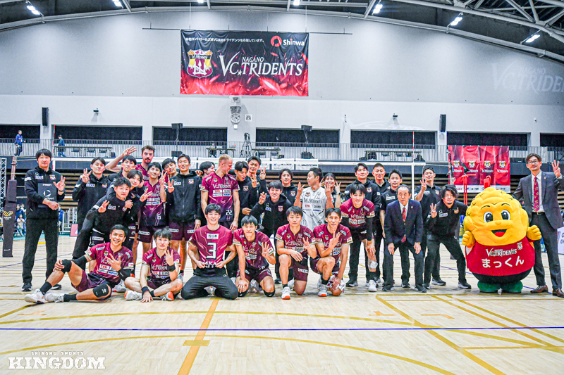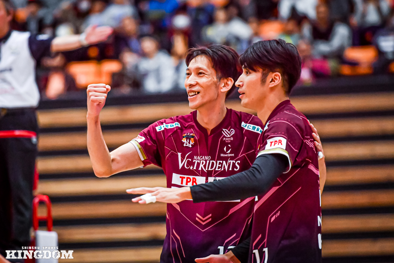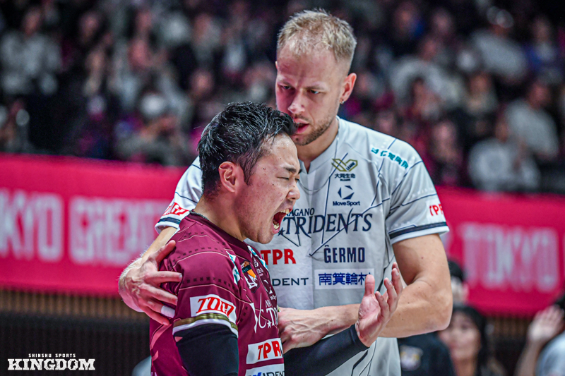 今までの鬱憤を晴らすかのような、ストレートでの快勝だった。SVリーグ男子第4節のGAME1。VC長野トライデンツは2025年11月15日、ホームのANCアリーナで東レアローズ静岡に3-0。第1〜2セットを連取すると、第3セットも終盤にリードを許しながらもデュースの末に30-28で取り切って今季初のストレート勝利。開幕節から悩まされた第3セットの鬼門を突破した一戦を振り返る。