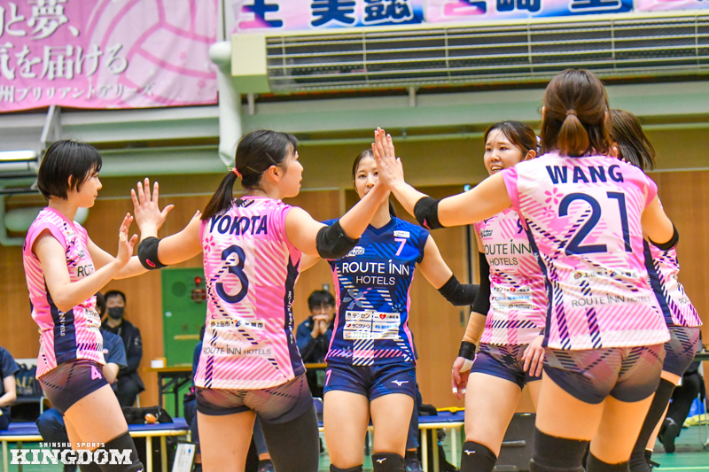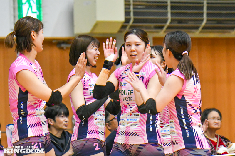 これで連敗は5でストップ。開幕戦以来の白星をストレートで飾りつつ、続く女子の信州Ariesに勝利でまずはリレーした。