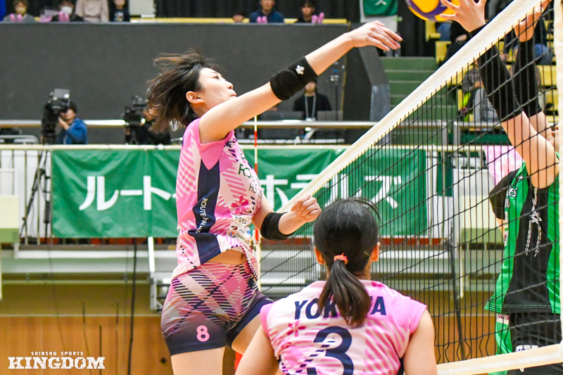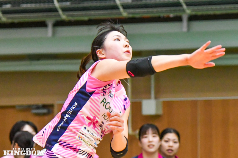 実際、高さでまさる信州Ariesは3セットで11本のブロックポイントを獲得。ケガから復活した山村涼香、進境著しい西村美海のミドルブロッカー(MB)陣が躍動した。