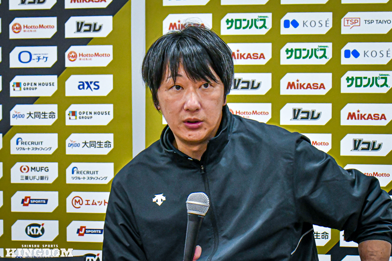 試合後会見でSTINGS愛知の真保綱一郎監督は「事前に対策を練った中で、サイドアウト率が非常に高かった。そのサイドアウトをいかに壊すかが我々の今日の課題だった」とうなずく。