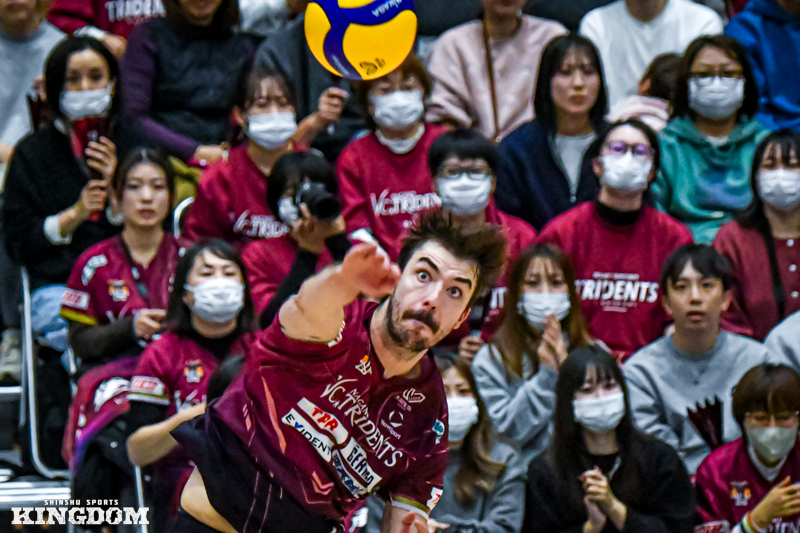 しっかりと対策された一戦だった。2025年11月22日、SVリーグ男子第5節GAME1のVC長野トライデンツはANCアリーナにSTINGS愛知を迎えてセットカウント1-3で敗れた。第1セットの出だしこそ好調だったものの、相手の堅いブロックディフェンスに終始苦戦しての黒星。ただ、その中でもセッター(S)赤星伸城やアウトサイドヒッター(OH)ファルハン・ハリムが躍動した。