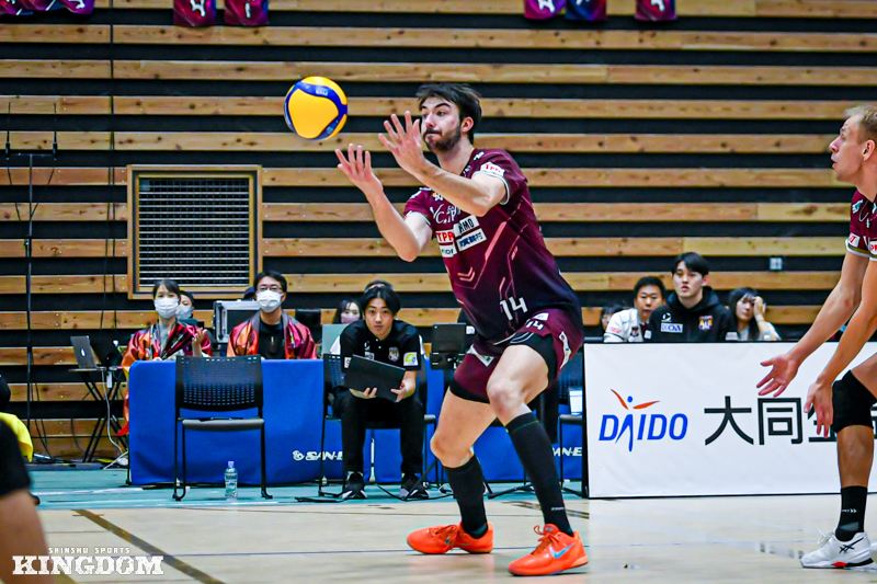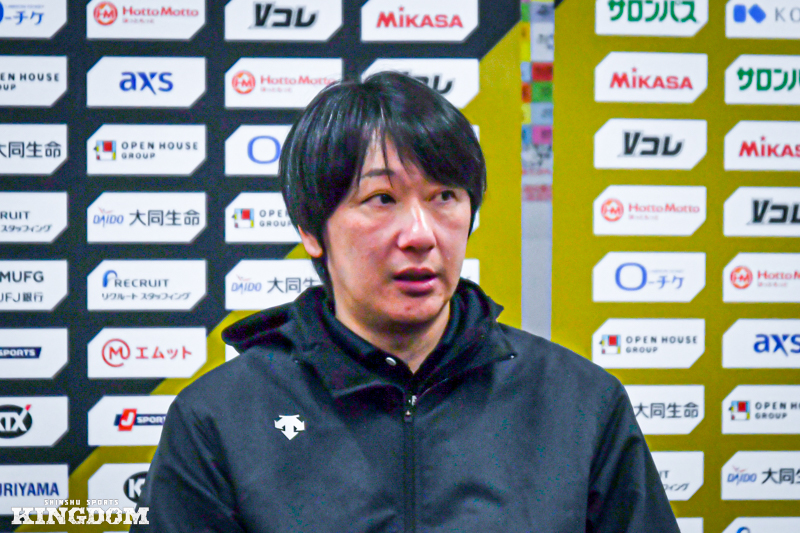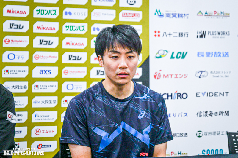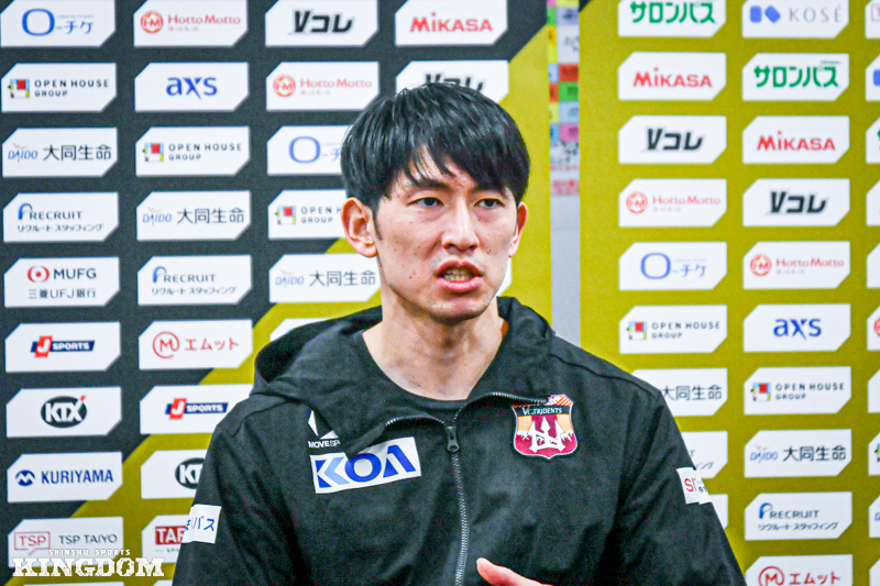 試合後会見でミドルブロッカー(MB)安部翔大は「ジンクスというか、2セット取ったら第3セットは絶対に取れないみたいになってきている状況がチームとしてはすごく嫌で、ストレートで1回勝ってそれを払拭したい」と話す。