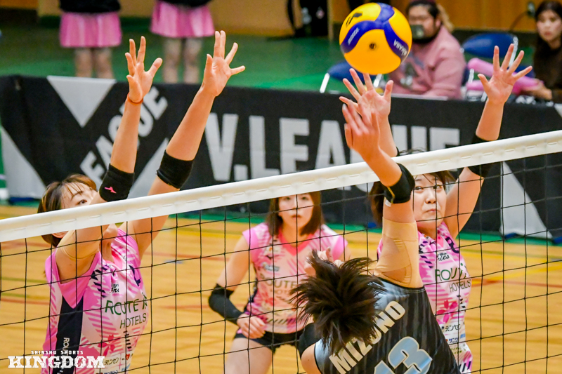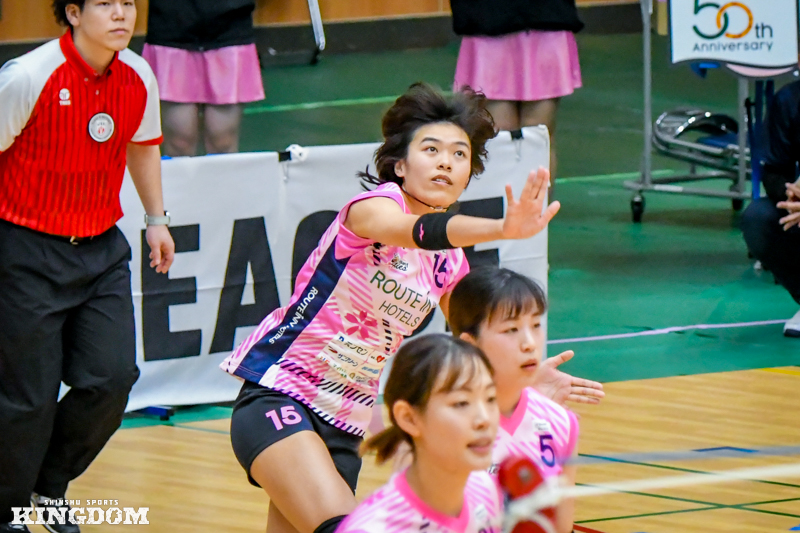 第1セットは9-25という圧倒的な大差で取られる。「1セット目は身構えてしまって、普通だったら取れるボールがどうしても取れない…というのも先入観であったかもしれない」とOH目黒愛梨。ただ、そこからは切り替えた。