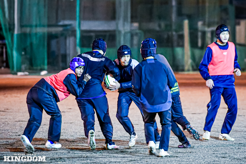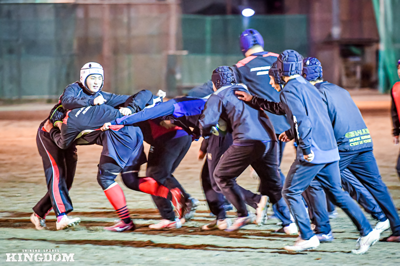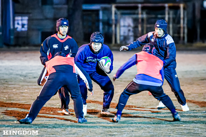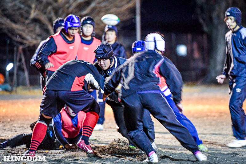 12月中旬、飯田高校。長野県内では南端の下伊那地方にも、本格的な冬が訪れていた。この日は木曜日。学校カリキュラムの関係で、練習がスタートしたのは午後5時からだった。日はすでに暮れ、薄暗い照明の中で身体をぶつける。