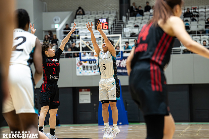 しかし、トヨタ自動車との2回戦では8得点。得意とする3ポイントシュートも0/15本と、トップリーグならではのプレッシャーを受けて沈めることができなかった。
