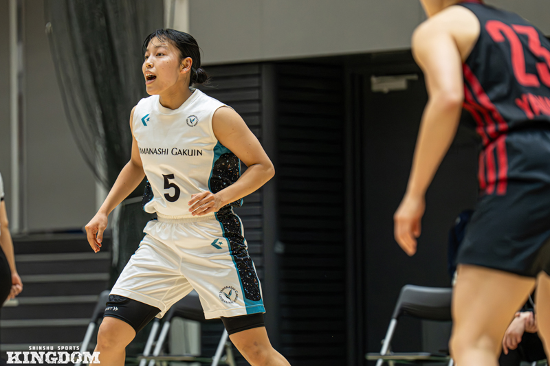 その後は関東リーグ1部の山梨学院大に進学。2年時には2部Aへの降格を経験したものの、翌年にはキャプテンに任命され、リーグ全勝で1部に返り咲いた。4年時にはユニバーシアード女子日本代表にも選ばれ、ウィリアム・ジョーンズカップ優勝にも貢献した。