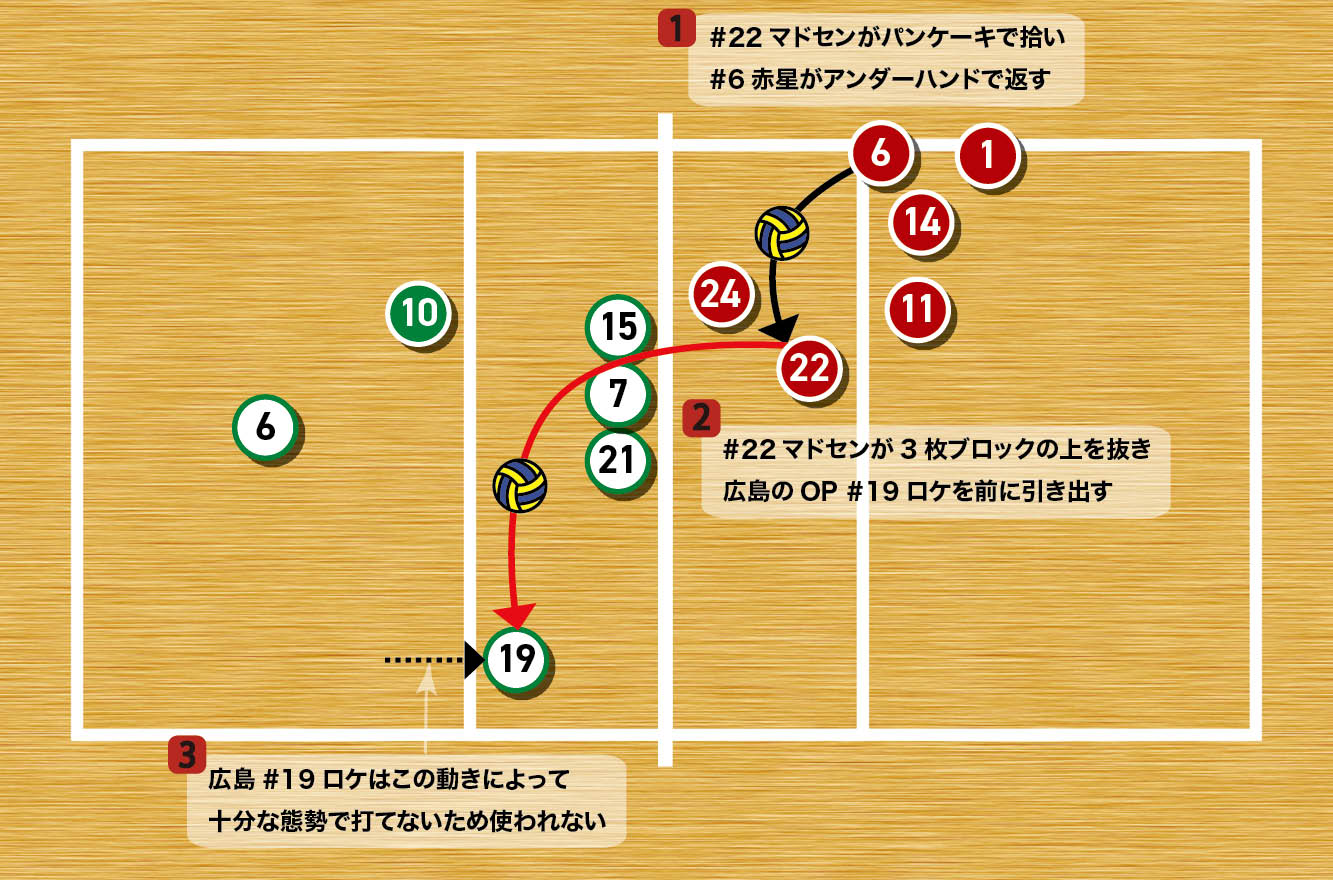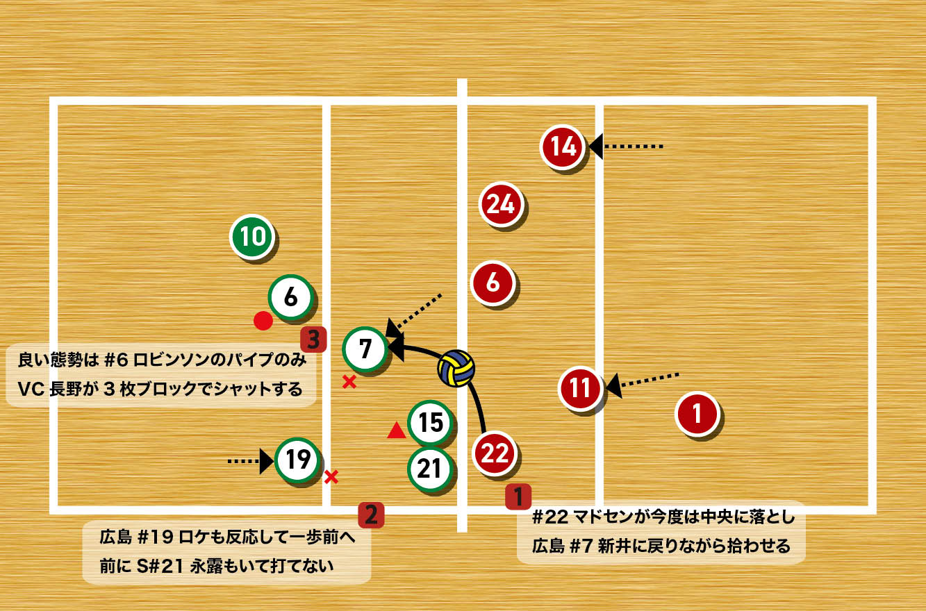 ã³ãŒãå ã§ã®ãå€åããæãããã象城çãªã·ãŒã³ããã£ããåºå³¶ãµã³ããŒãºæŠGAME2ã®ç¬¬3ã»ããã21-22ããã®ã©ãªãŒãä»åã¯äžé£ã®ãã¬ãŒã§VCé·éãæããããå€åã詳ãã解説ããã厩ãããç¶æ ããæã¡çŽãã€ã€å·§ã¿ã«çžæã®æ»æãéå®ãã3æãããã¯ã§ã·ã£ããããã·ãŒã³ã ã