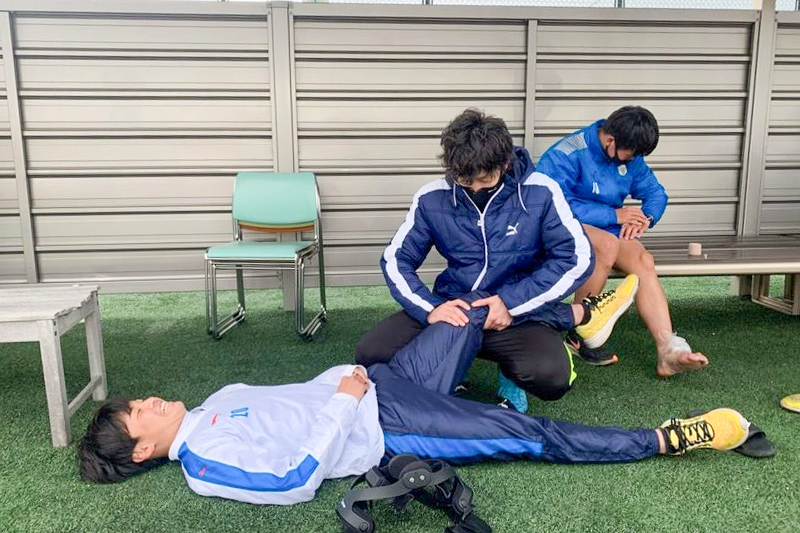 中心選手の一人として活躍していた野澤選手だったが、6月に腰椎椎間板ヘルニアの手術を受けて長期離脱を余儀なくされた。自身もサッカー経験があった山室さんは志願して野澤選手を担当。「選手の気持ちを理解しながら、医療面では冷静な判断をして寄り添っていく」ことを重視した。