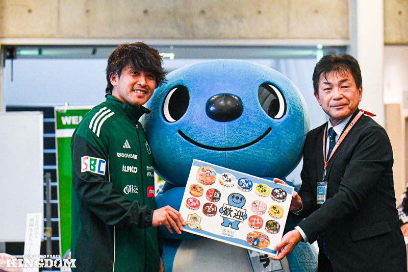 静岡市農業協同組合からは名産品の静岡茶。清水漁業協同組合からは用宗漁港で加工された釜揚げしらす。静岡市清水区地域総務課からはもつカレーと焼き鳥に加え、清水区のマスコットキャラクター・シズラのクッキー詰め合わせ。静岡市まちづくり公社からは静岡市のお茶を飲んで育ったTEA ton。清水ナショナルトレーニングセンターからは石垣いちごの紅ほっぺと、多種多様な特産品が寄贈された。
