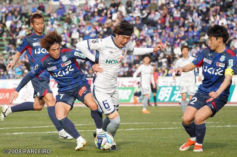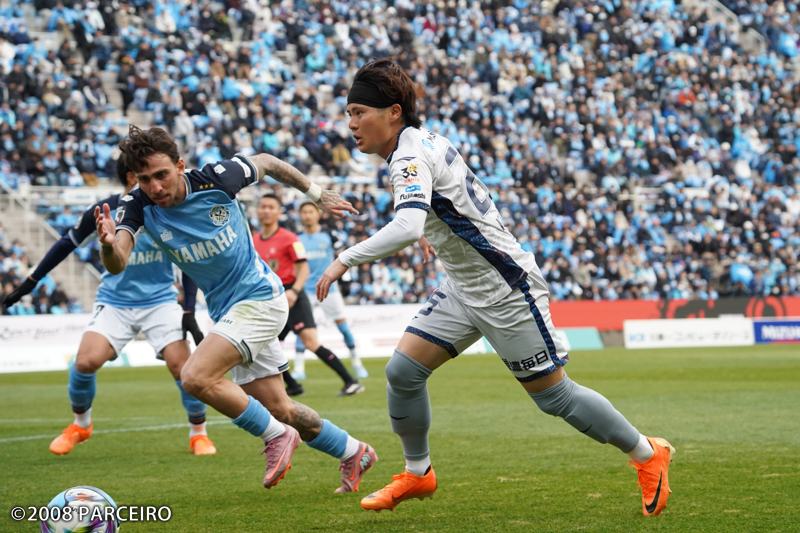 磐田戦は前半から左サイドを制圧。サイドハーフの近藤貴司とサイドバックの田中康介が、内側と外側を使い分けてスペースを共有する。新加入のセンターバック・附木雄也の好配球も相まって、何度も高い位置に進入した。