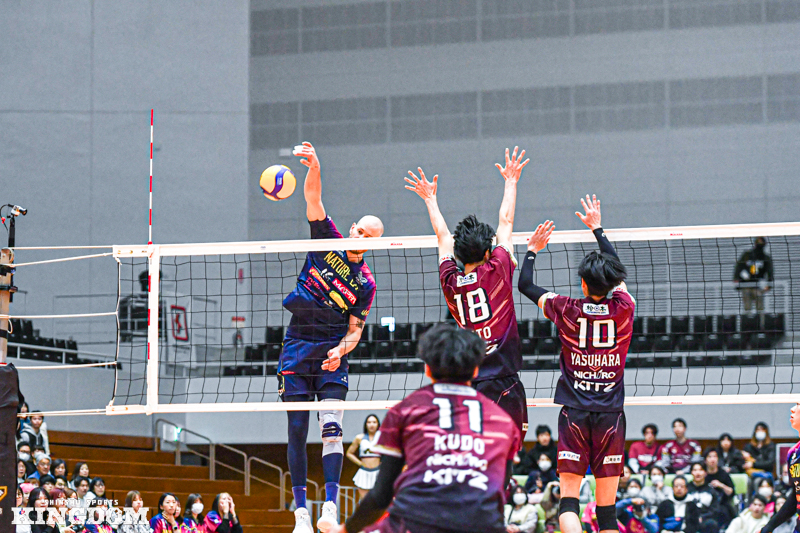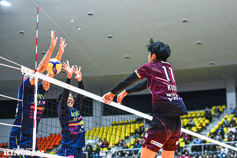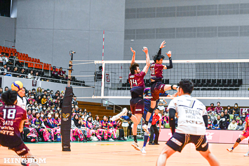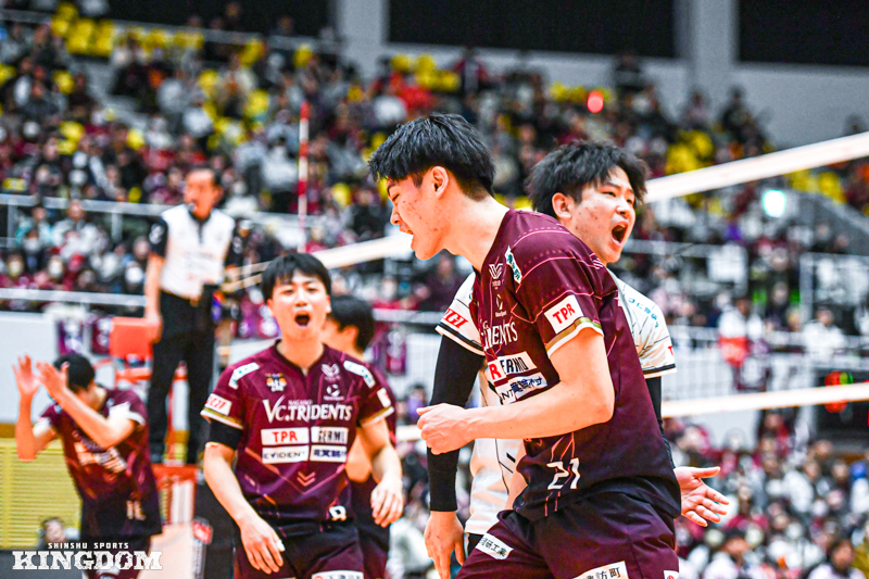 GAME1は元気印のリベロ(L)磯脇侑真やアウトサイドヒッター(OH)工藤有史が中心となって声を出し、チームを鼓舞し続けた。