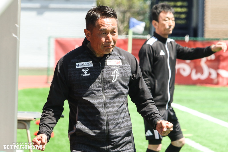 それまで静かに戦況を見守る時間が長かった柴田監督だったが、残りの時間はテクニカルエリアの最前線に立って選手を鼓舞。ホームで負けられないマツセロナの反撃を跳ね返してリードを守り切り、開幕2連勝を飾った。