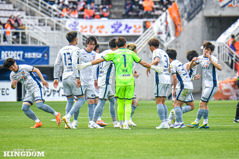 立ち上がりから押し込まれ、56分から立て続けに5本ものCKを与えた。際どいシーンもあったが、「みんなから『ここだぞ』という声が出ていた」とGK田尻健。11人全員で守勢に耐えた直後の65分、DF田中康介の思い切ったミドルシュートで得たCKからMF長谷川隼が先制点を挙げた。